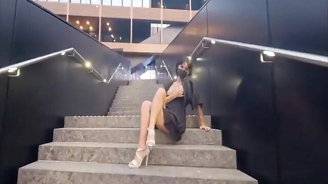 Blonde Horny in Public Place - Flashing at Furniture Shop