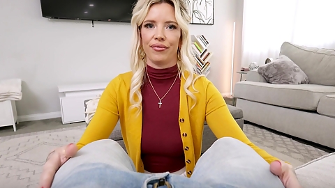 Skinny blonde bimbo Thea Summers pleasures her stepbrother in POV