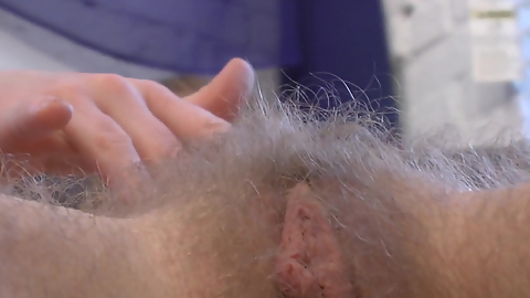 Vintage pretty hairy girl with huge muff and happy trail