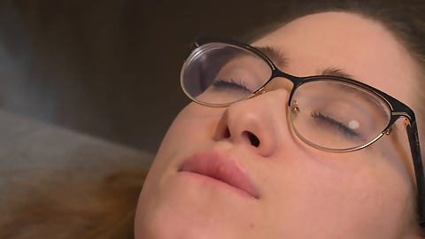 Attractive nasty brunette squirts on fingering pussy before work