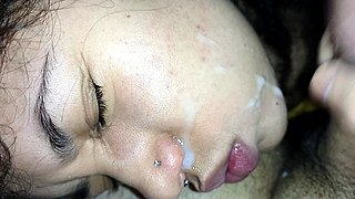 CREAMPIE FACIAL, JORRANDO ESPERMA NA BOQUINHA GULOSA DA VADIA