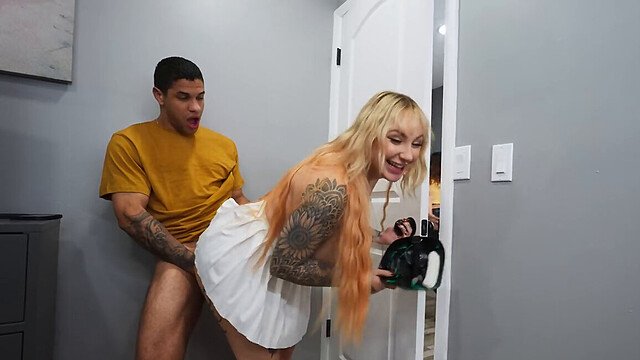 Inked and slutty blonde dealing with a huge fucking dick