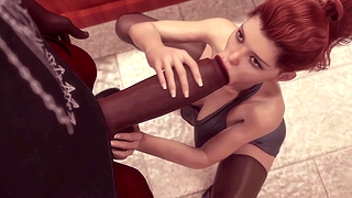 3d animation of a lustful milf with giant tits sucking cock late then jumping on it to make him cum in her snatch
