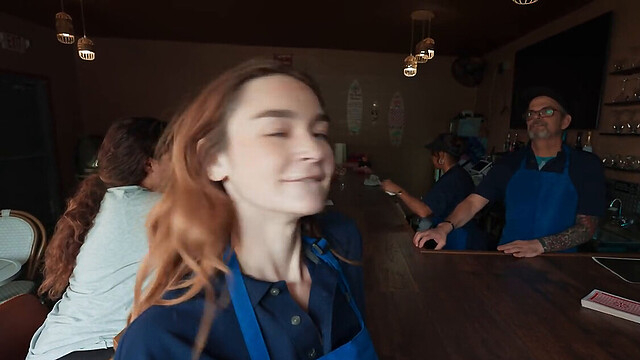 Nasty horny ginger deepthroats and orgasms on riding fat cock