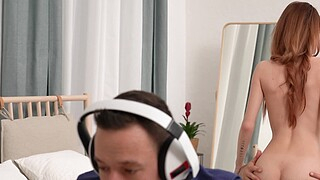 Slutty chick fucks with boyfriend's dad behing his back
